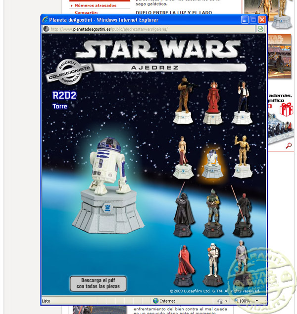 En Septiembre de 2010 la editorial Planeta DeAgostini lanzó al mercado una colección de ajedrez de la saga de Star Wars.