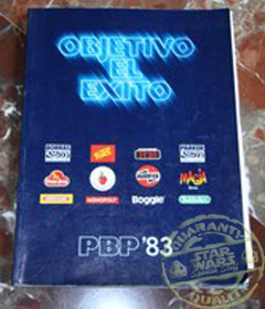El catálogo muestra los juguetes fabricados o distribuidos por PBP en 1983, entre ellos la licencia para el mercado español de Kenner Star Wars.