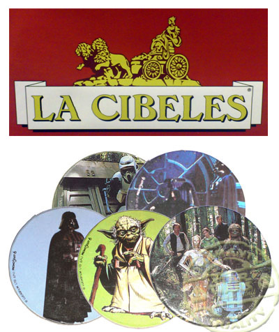 Durante 1983 y 1984 con motivo del estreno en los cines de Star Wars El Retorno del Jedi, Chocolates La Cibeles saco al mercado junto con sus productos unos cromos con forma de chapa de personajes y escenas de la pelicula.