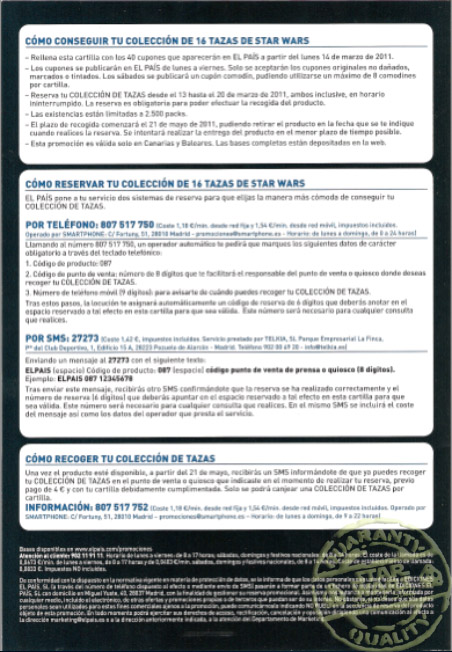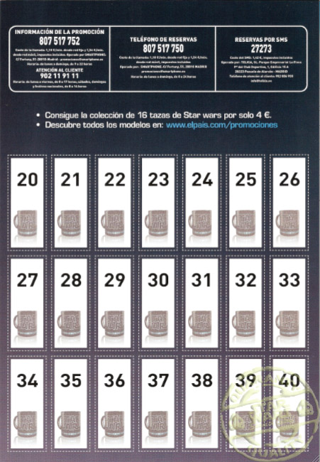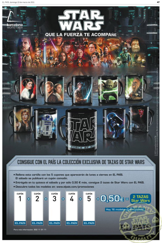 Semanalmente de Marzo a Mayo de 2011, el periódico El País entregaba con el diario y pagando un extra de 0,50 euros más 5 cupones, 2 tazas distintas de la colección hasta completar en total 16 tazas distintas.