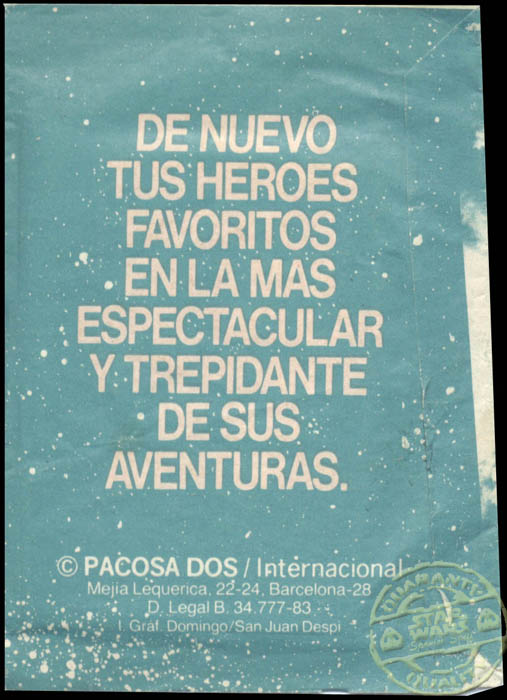 Cromos El Retorno del jedi. Pacosa Dos Internacional