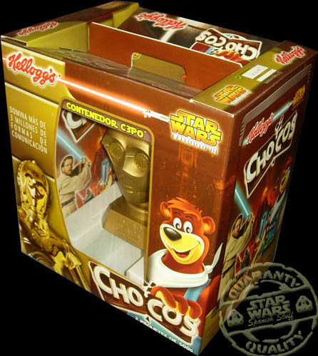 En esta ocasion, como paso anteriormente en el Episodio I, Kellogg’s hizo un gran esfuerzo y saco una de las mejores promociones al mercado, distintos paquetes, estatuas, espadas laser, tarjetas, caretas, tazas, …