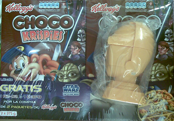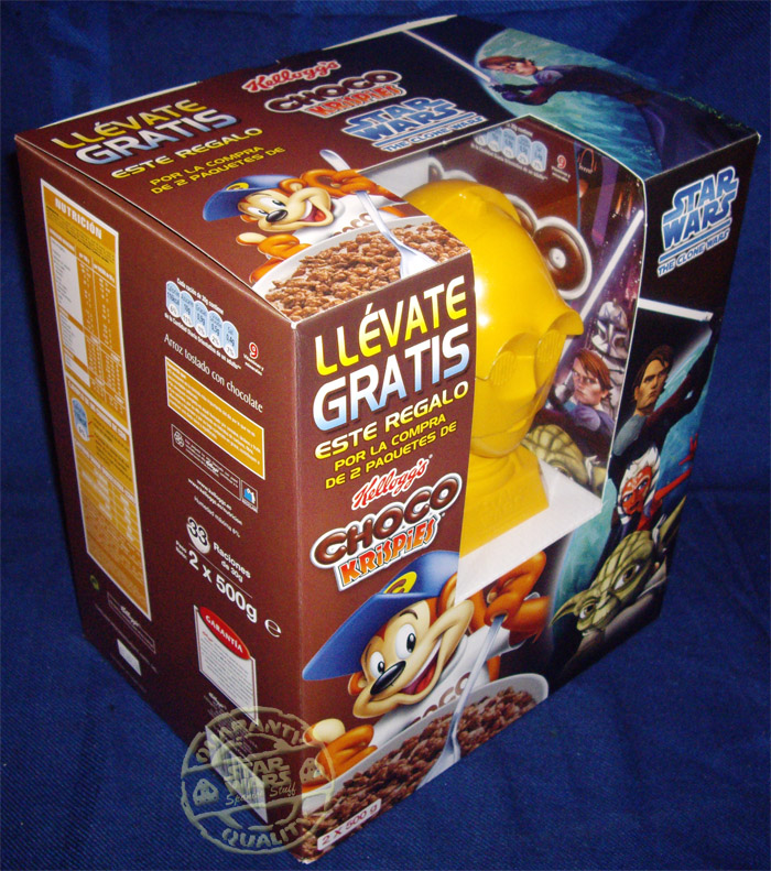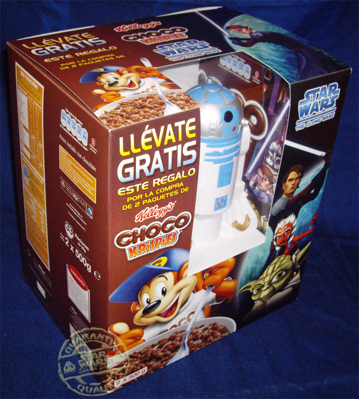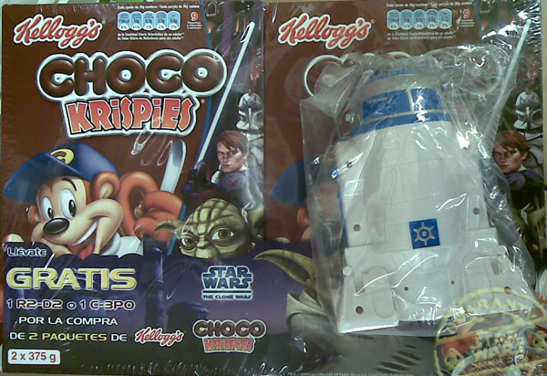 A parte de estas cajas existia en un primer momento la idea de realizar un paquete especial con un regalo que consistia en un R2-D2 o un C-3PO en una caja doble con 2 paquetes de 500 gramos de Chocos o Choco Krispies, pero parece ser que finalmente estos paquetes nunca llegaron a ver la luz y se quedo todo en un proyecto. No obstante en algunos supermercados e hipermercados se pudo ver como junto con la compra de 2 paquetes de Kelloggs se regalaba o el busto de C-3PO o el de R2-D2