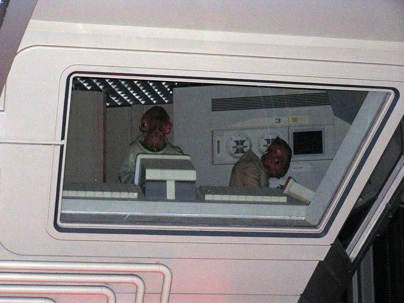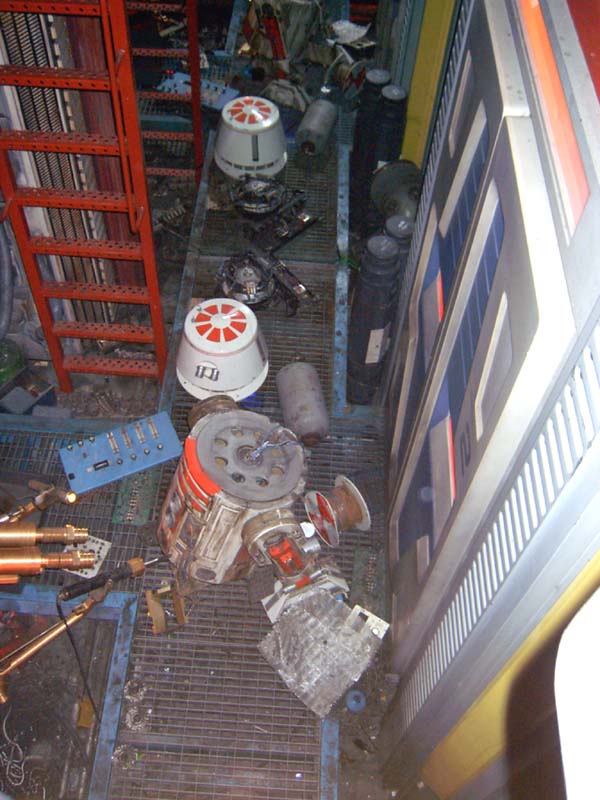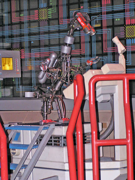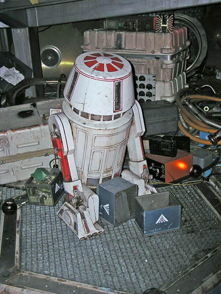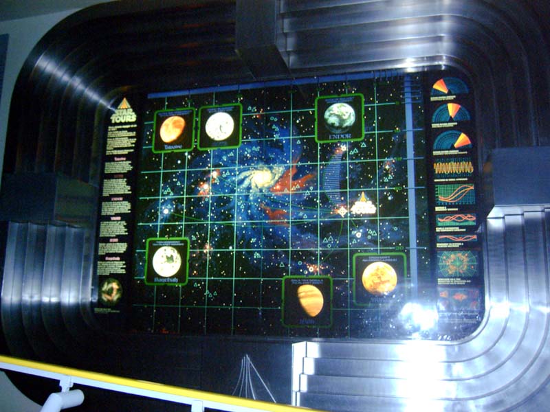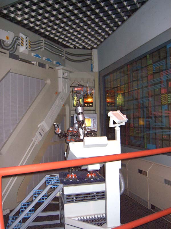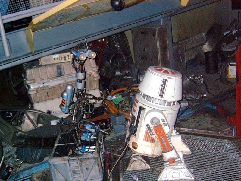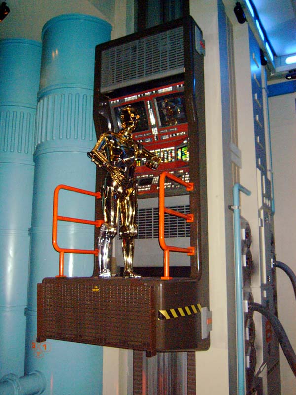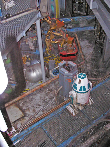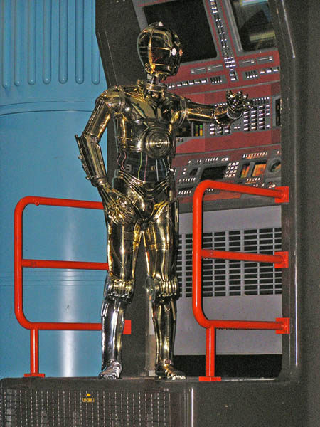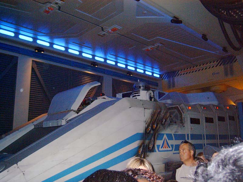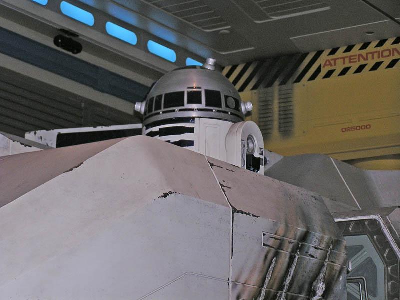 «Star Tours» es una atracción-simulador donde vamos a experimentar lo que se siente estando dentro de una nave que recorre localizaciones aparecidas en Star Wars. Para no desentrañar demasiado su contenido, dejo que las descubrais por vosotros mismos … Antes de entrar en el simulador, recorreremos unos pasillos ambientados en su totalidad. Teneis algunas fotografías donde podeis ver diferentes escenas y personajes que nos iremos encontrando, incluidos, por supuesto, nuestros queridos droides C3-PO y R2-D2. Todo está pensado al 100% y perfectamente realizado.