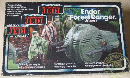 Endor Forest Ranger con la peculiaridad de la pegatina que indica que la nave incluye un rebel comando gratis.