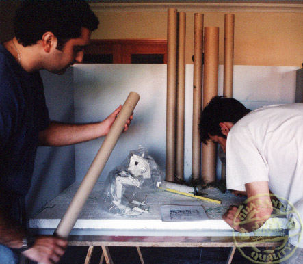 • David: No sabría decirte si fue David o yo el que primero lo propuso. Seguramente sería él porque estaba como una cabra.. ;-) Por aquel entonces yo estaba haciendo un master de museología y museografía, y al mismo tiempo mantenía mi taller de restauración con pequeños trabajos, así que era mi propio jefe, y estaba especializándome precisamente en montar exposiciones, así que no nos pareció tan difícil… Seguramente surgió la idea, y rápidamente nos pusimos a pensar si sería viable y como se podría plantear.
