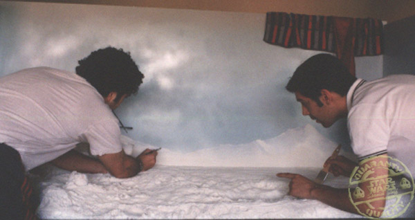 • David: La verdad es que si fue arriesgado. Solamente alquilar todos los Salones del Hotel ya nos supuso adelantar 800.000 pesetas del año 98..! Luego las vitrinas, luces, pintura, transportes, publicidad, etc… y también es cierto que el tramo final tuvimos que hacerlo pidiendo un crédito los días anteriores, con la esperanza de devolverlo al final. En mi casa me miraban como si estuviera loco, ja ja, mi pobre padre tuvo que pagar una factura de teléfono astronómica, y mi taller quedó hecho polvo y paredes y suelo pintados de azul, pero mereció la pena.