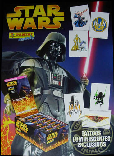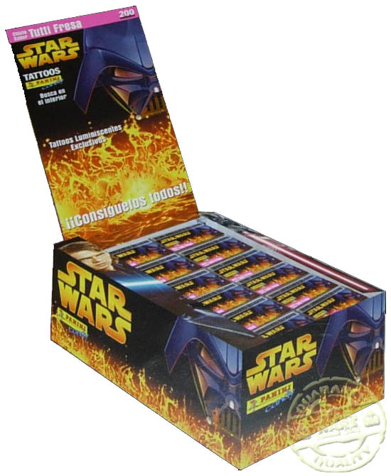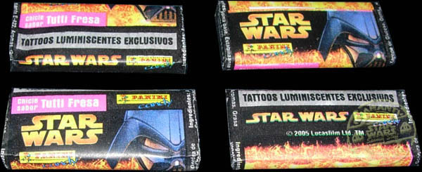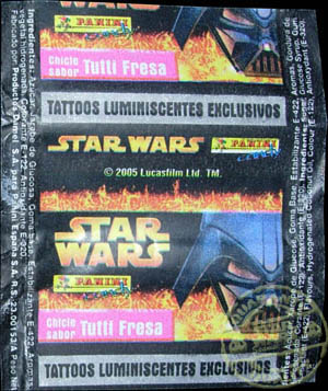 Con motivo del estreno en los cines de Star Wars Episodio III La Venganza de los Sith, Panini de mano de su filial Panini Candy, lanzo al mercado unos chicles que incluian un Tatto tipo calcamonia luminiscente.