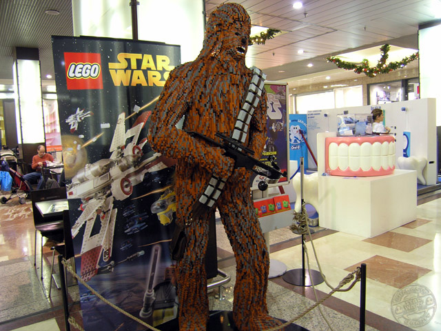 Impresionante altura y un bastante buen acabado aunque, como el pelo es pelo, no era precisamente la mejor de todas. Es muy difícil encontrarse cara a cara con un Chewbacca «pixelado» y quedar encantado de lo visto.