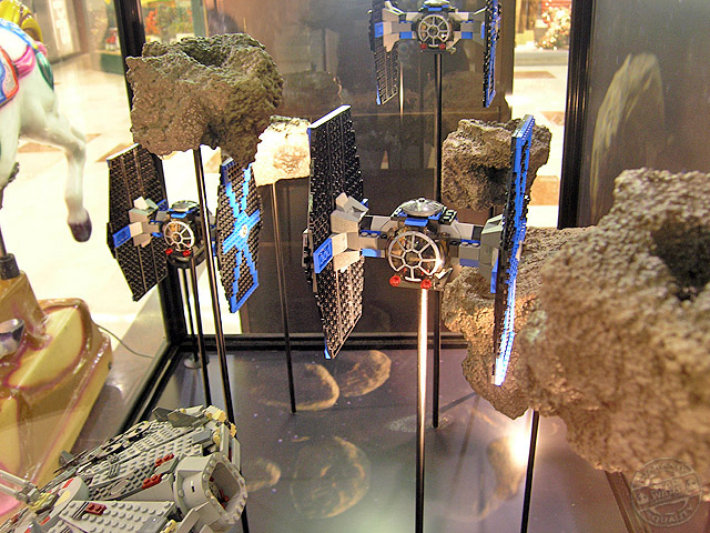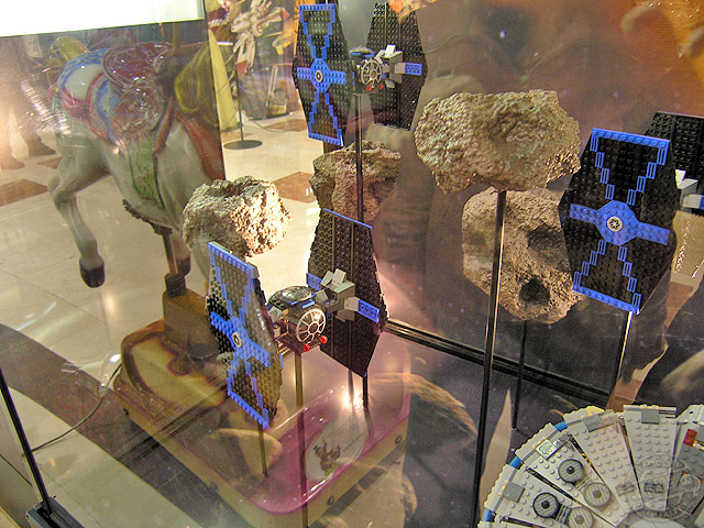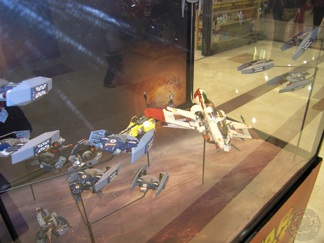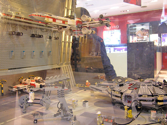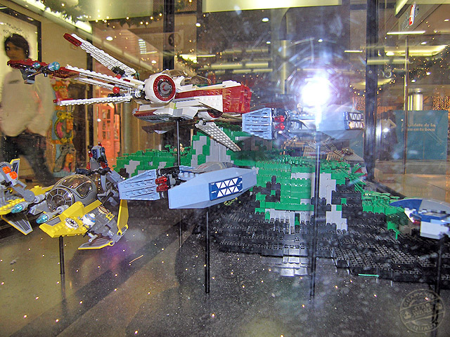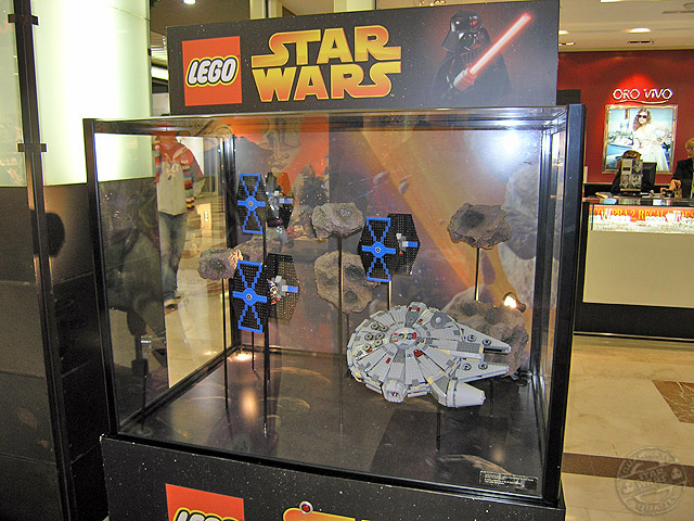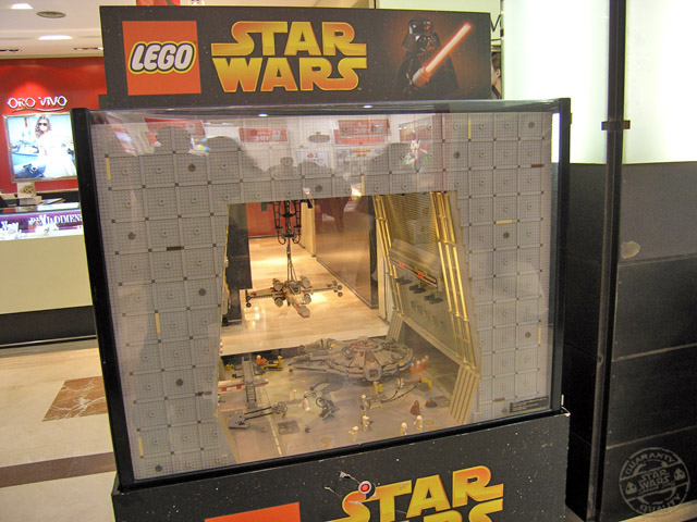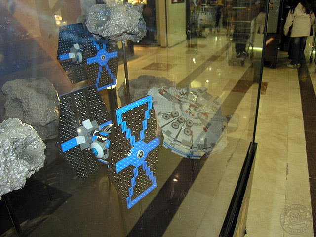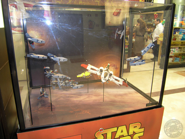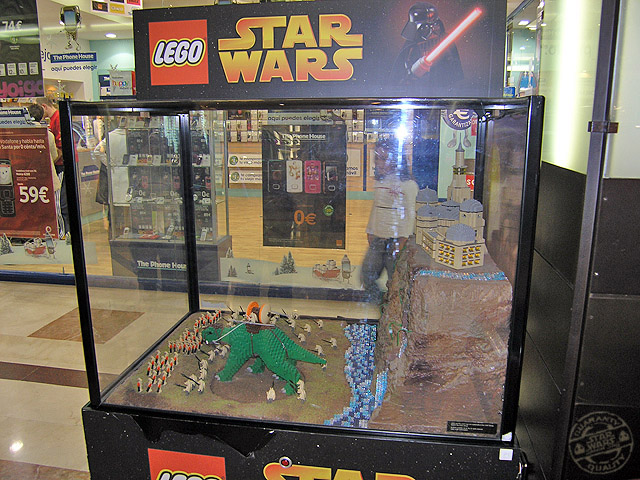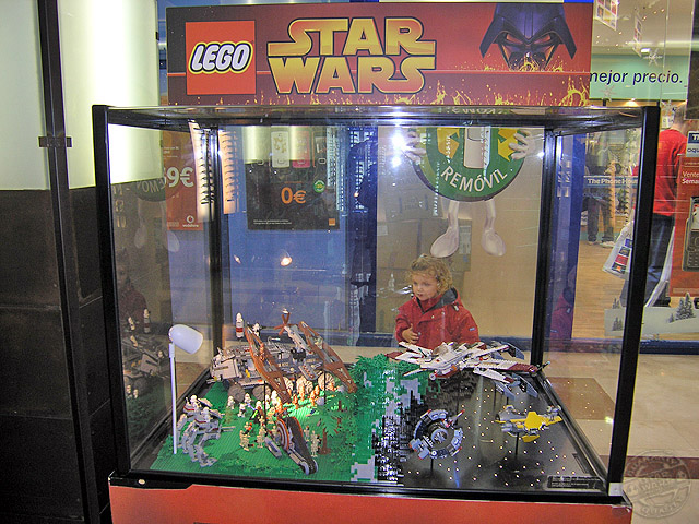 Desde los días 5 de diciembre al 6 de enero, el centro comercial «Gran Vía de Hortaleza» ha preparado una exposición para que todos sus clientes, visitante en mi caso, puedan disfrutar de la saga de Star Wars en una visión miniaturizada mediante los famosos bloques y accesorios de la empresa Lego. Vitrinas con dioramas y personajes en su versión de bloques, tienen su espacio dentro del recinto.