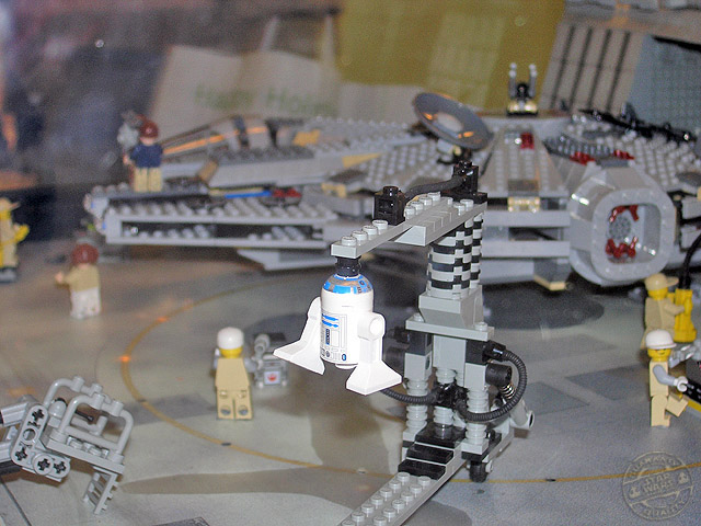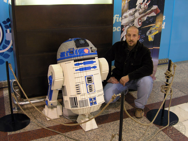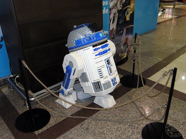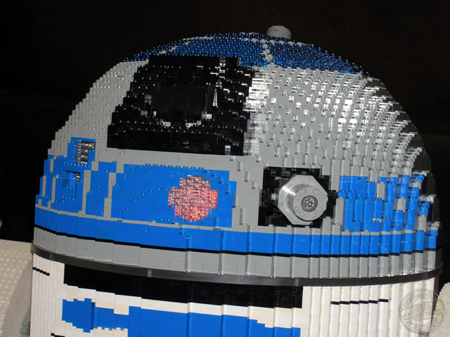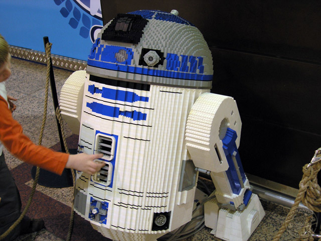 Y ya llegamos al final de esta exposición. Como ya he anticipado, lo último que se puede ver, si por supuesto se sigue el itinerario que yo hice, es otro de nuestros queridos personajes. Una copia del entrañable R2D2 nos aguarda. Sin duda es el mejor de todos los personajes que he visto. Está bastante bien acabado e, incluso, incorpora luces que le hacen parecerse aún más al personaje que representa. A R2 las piezas de Lego parece que le encajan perfectamente, no mostrando demasiada diferencia con su semejante original.