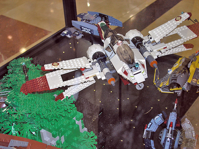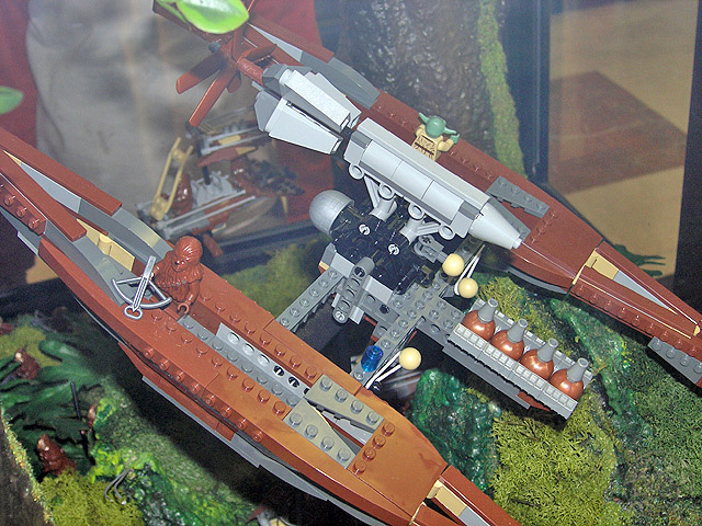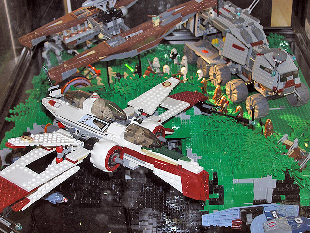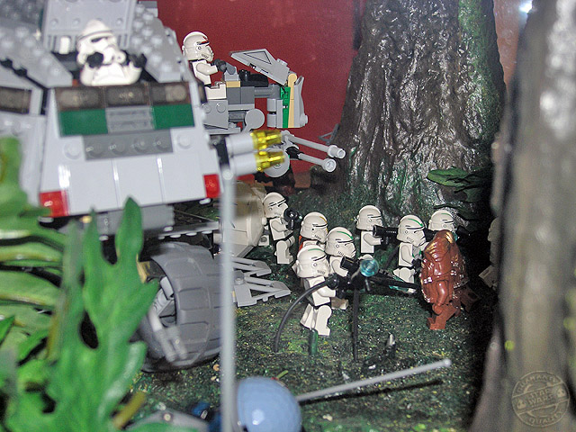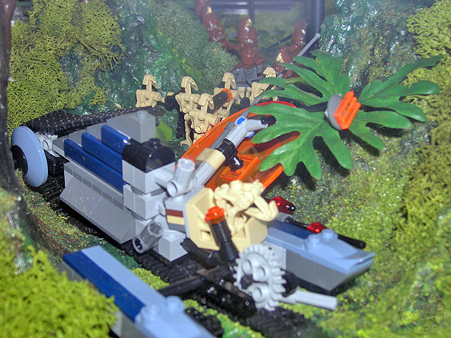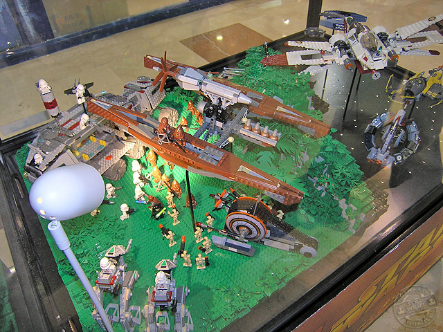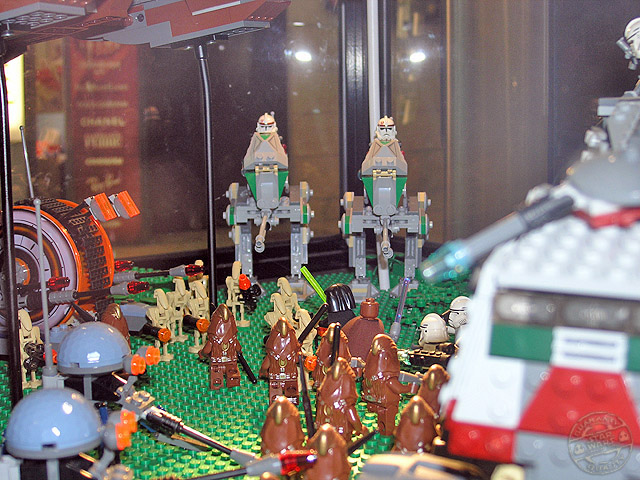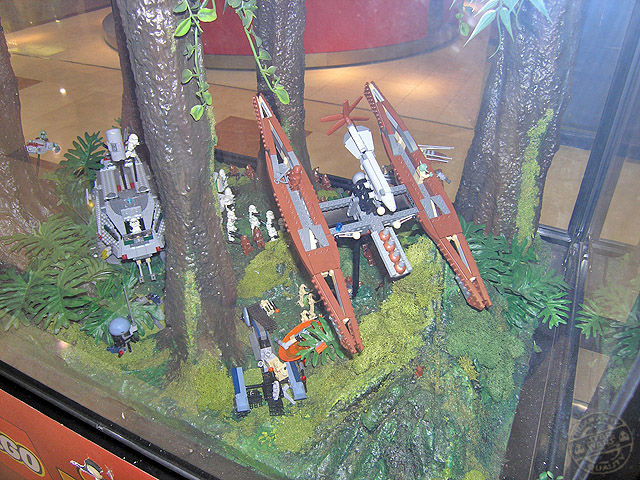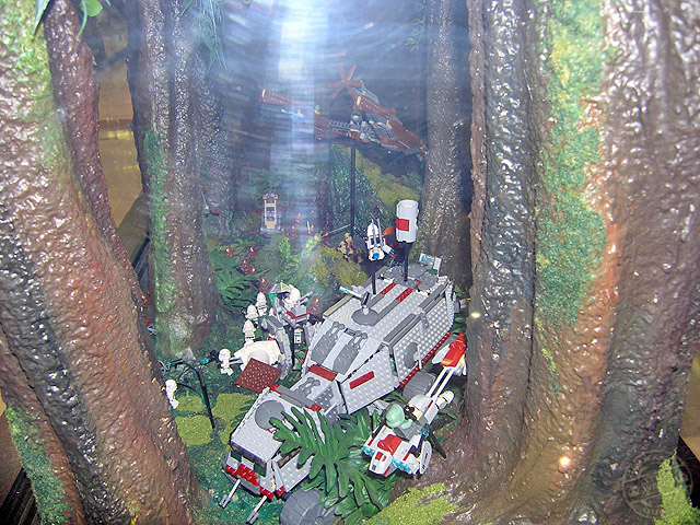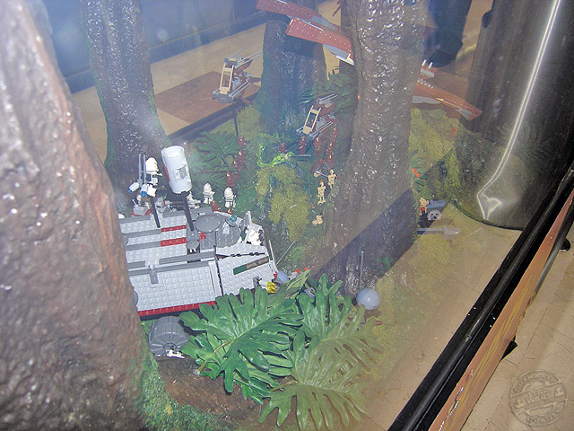 Las dos vitrinas de Kashyyyk son de las mejores sin ningún tipo de duda. Incorporan una gran cantidad de personajes y vehículos dentro de ellas, y la escena está muy lograda utilizando diversos materiales para conseguirla. La arboleda de la batalla, con sus troncos, flores y musgo, es para enmarcar.
