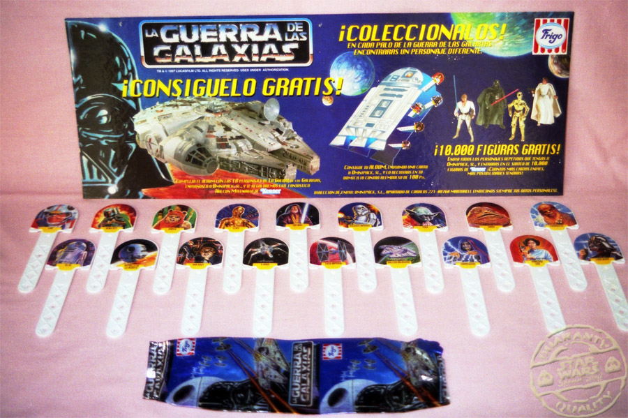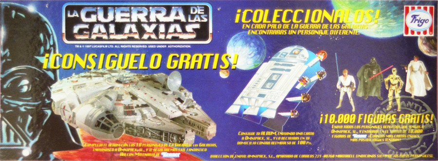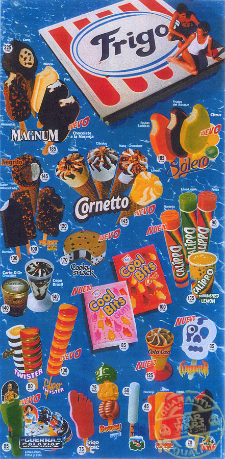 Aqui se pueden ver los envoltorios de los helados asi como el cartel promocional usado en los puntos de venta.