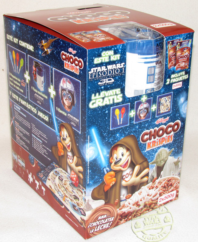 En algunos comercios se venden estos packs especiales con 2 paquetes de 500 y 375 gramos que incluyen además unos regalos. Los regalos elegidos para la promoción son 2 tazas con los personajes R2-D2 y Darth Maul y un juego de mesa (solo en la version de 500 gr)
