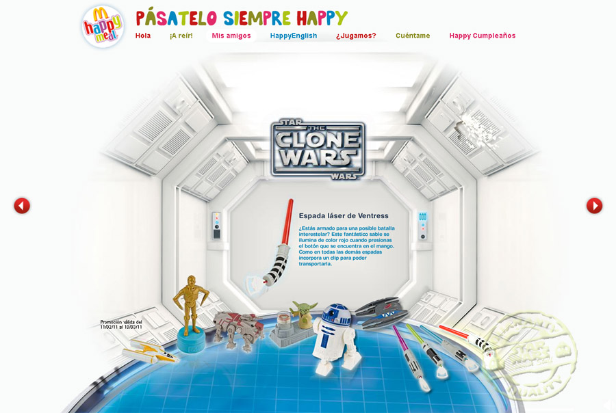 A principios del 2011, concretamente del 11 de Febrero al 10 de Marzo, McDonalds lanza esta promoción en sus restaurantes españoles con el motivo de The Clone Wars.