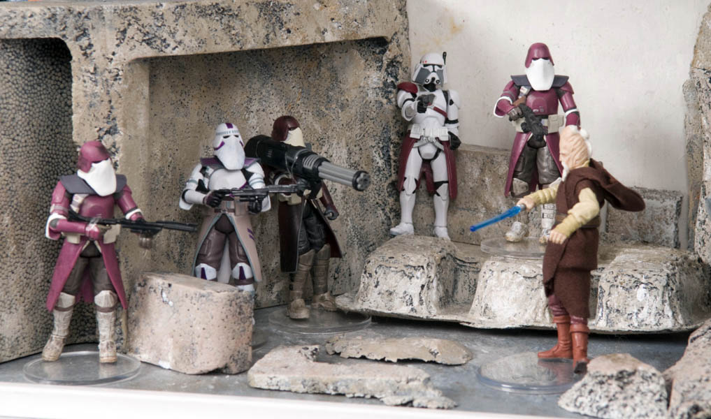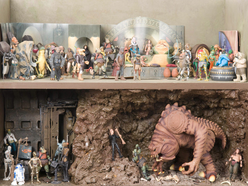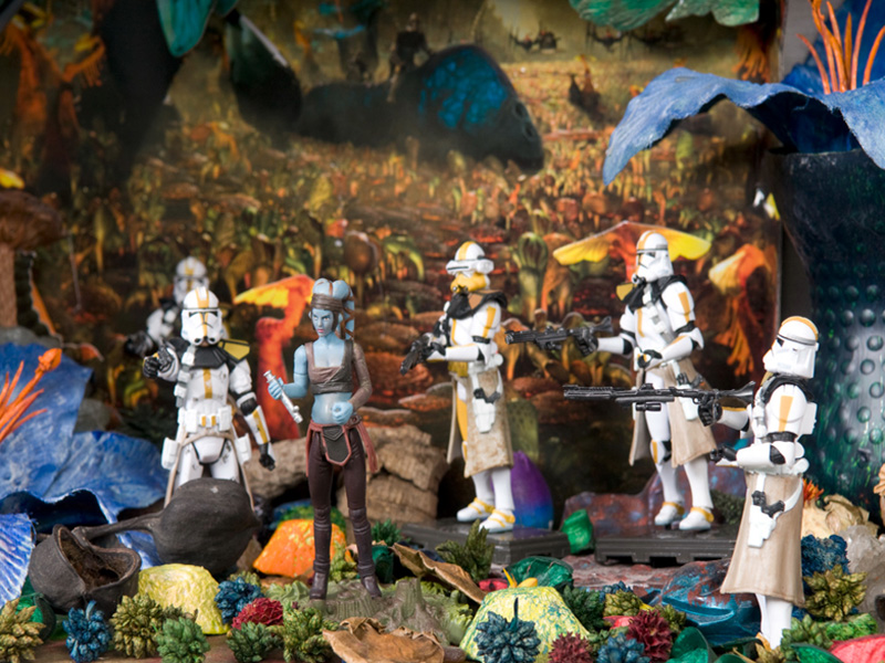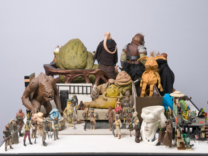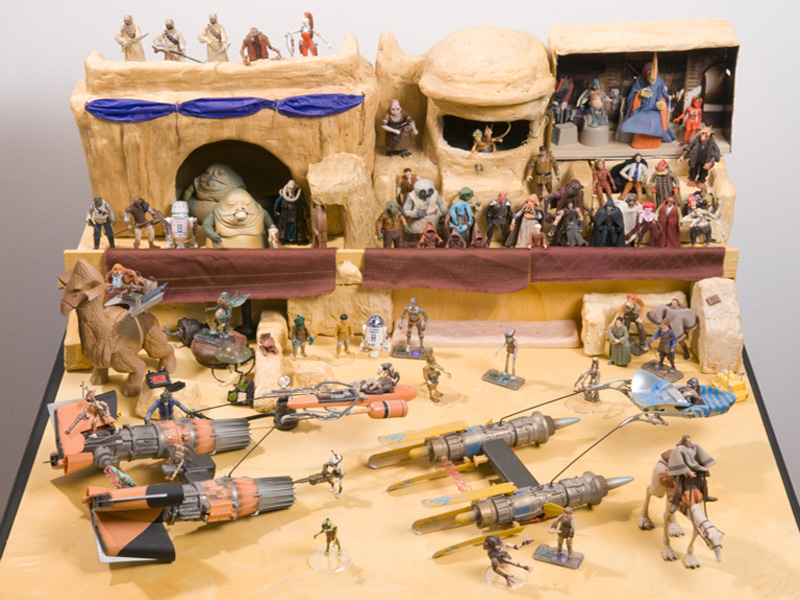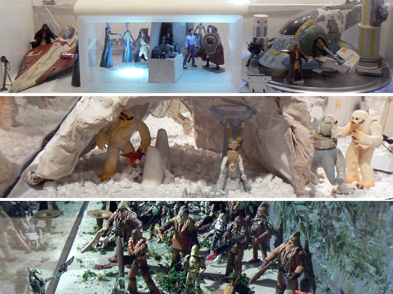 La muestra fue un recorrido de los diferentes episodios en su orden cronológico a través de una veintena de recreaciones de escenas o dioramas con las figuras 3 ¾” de Hasbro potenciados con una selección de material variado desde el vintage al moderno, posters, merchandising y otras gamas de juguetes procedentes de la colección particular de Wiro Berriatúa.