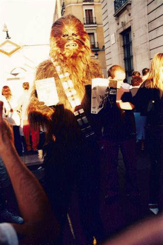 En el 2004 Fox España decidio traerse a Chewbacca a la Puerta del Sol para presentar oficialmente la Trilogia clasica en DVD.