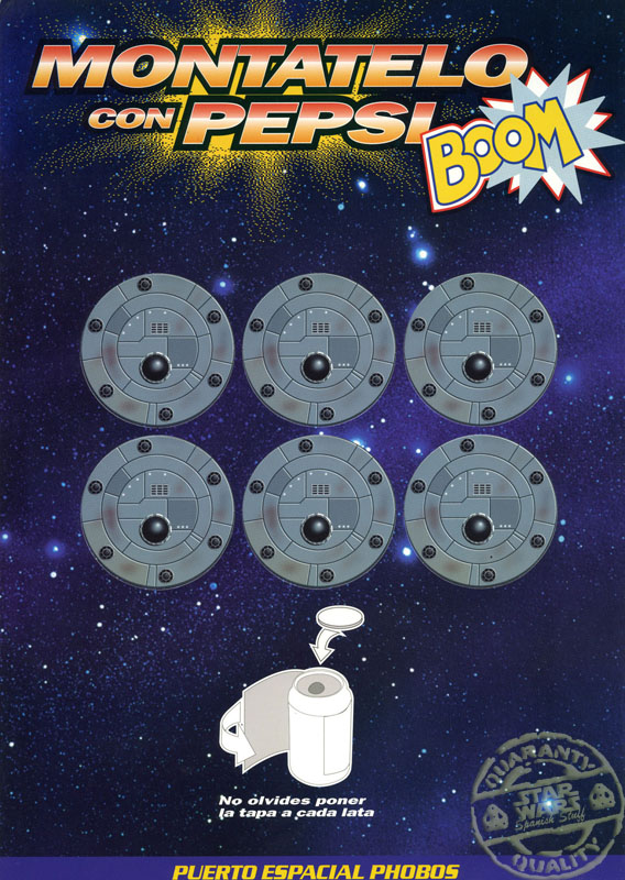 En algunos establecimientos regalaban unos sobres con unas figuras troqueladas, correspondiente a la promoción Móntatelo con Pepsi Boom (pepsi sin cafeína)