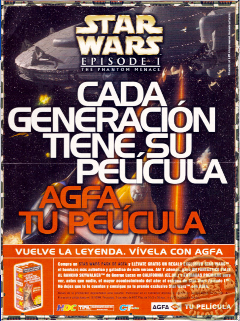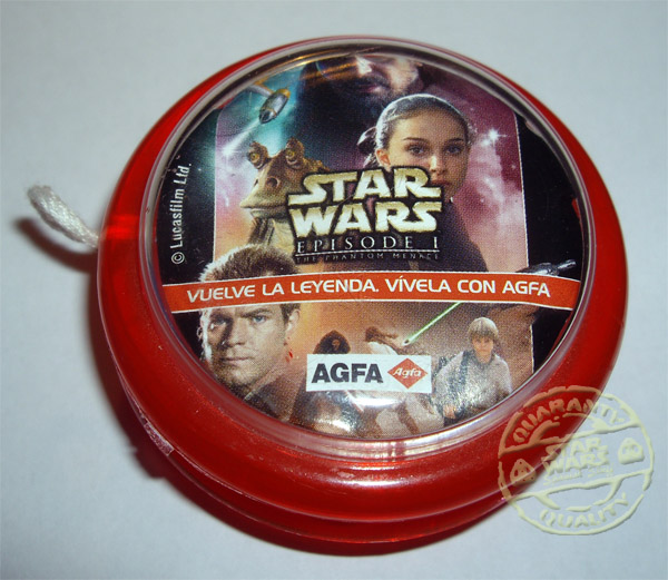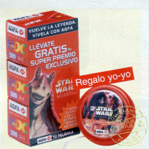 Con motivo del estreno en los cines de Star Wars Episodio I La Amenaza Fantasma, Agfa promocionó sus carretes para las camaras de fotos de 35 mm regalando un disco volador o un yo-yo.
