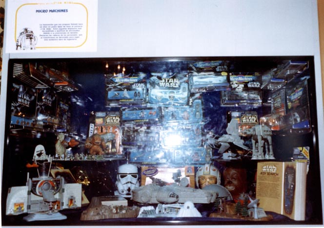 Se expusieron una serie de vitrinas, unas 17. En algunas de esas vitrinas se mostraba una gran variedad de dioramas realizados para la exposicion y en el resto se amontonaban las piezas de todo tipo, desde juguetes a libros, pasando por latas de refresco, chicles, ropa, articulos de higiene, etc…