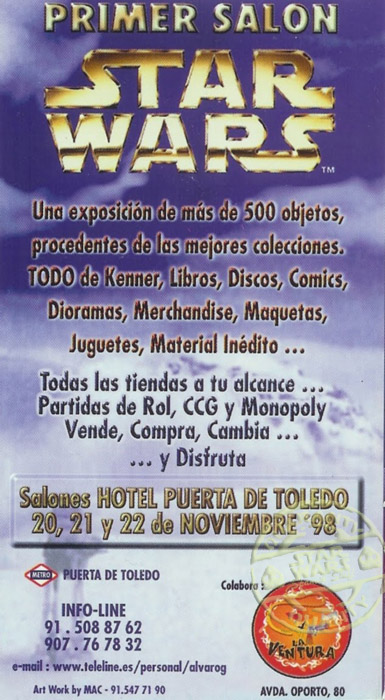 En 1998 David Gonzalez y David Garcia Hermosilla junto con otros colaboradores se reunieron para montar el Primer Salon de Star Wars en el Hotel Puerta de Toledo. Esta reunion marcó un antes y un despues, principalmente debido a la calidad de los trabajos allí presentados y de la cantidad, variedad y calidad de los objetos expuestos.
