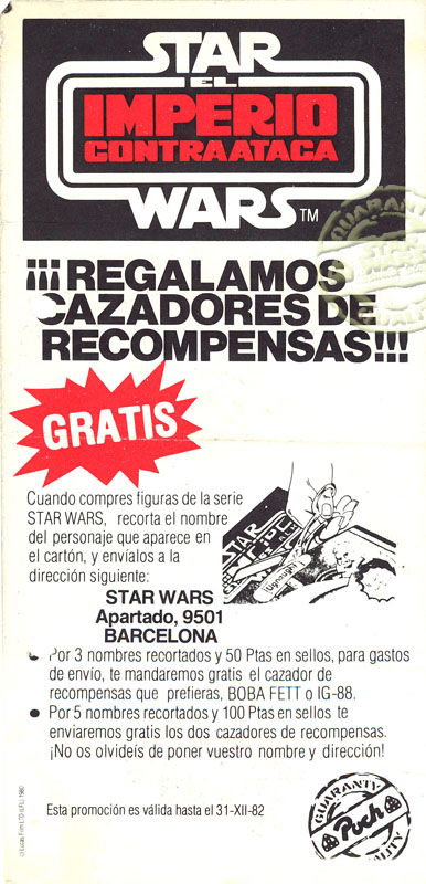 Enviando 3 nombres recortados de los blister + 50 pts en sellos se obtenia un cazador de recompensas, IG-88 o Boba Fett.