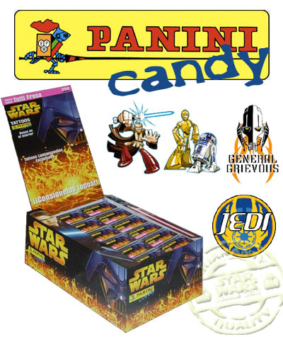 Con motivo del estreno en los cines de Star Wars Episodio III La Venganza de los Sith, Panini de mano de su filial Panini Candy, lanzo al mercado unos chicles que incluian un Tatto tipo calcamonia luminiscente.