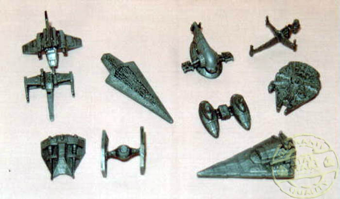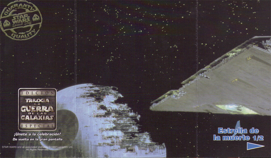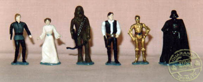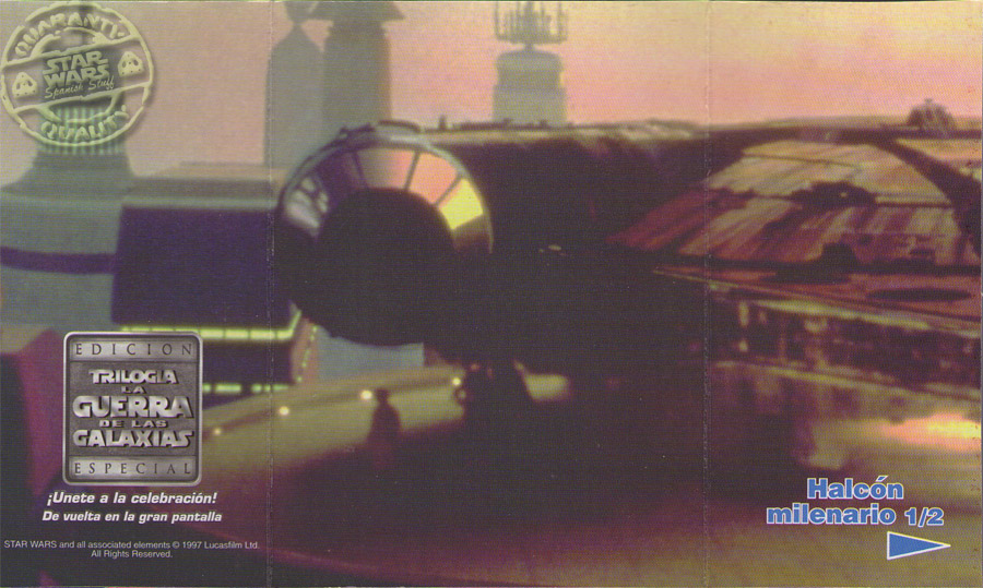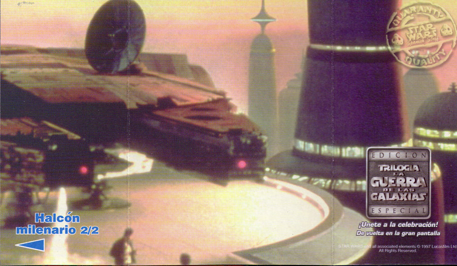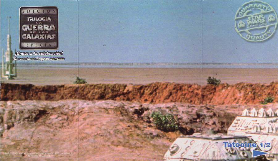 En cada caja habia una tarjeta correspondiente a medio escenario de las peliculas, y una figura o nave en una bolsita sellada.