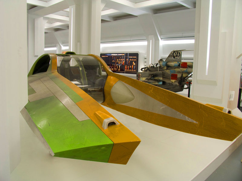 Las piezas se reparten en diferentes ámbitos, que no son otros que los planetas en los que suceden los principales acontecimientos de la saga, los cuales se distribuyen a partir de un eje central, la nave. Además, en los textos y vídeos que se exhiben, se revelan algunos